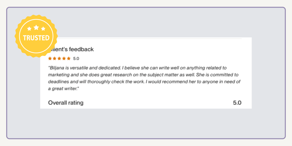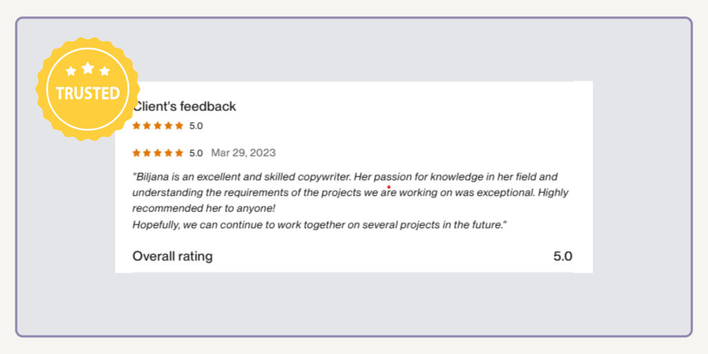 Biljana is an excellent and skilled copywriter. Her passion for knowledge in her field and understanding the requirements of the projects we are working on was exceptional. Highly recommended her to anyone!